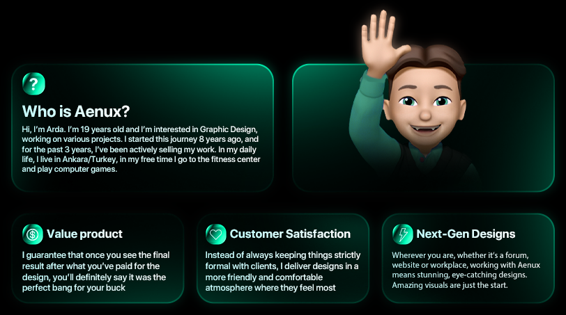 Aenux is an 19-year-old graphic designer. He has been working for 8 years in graphic design. He works to provide the best service to his customers.